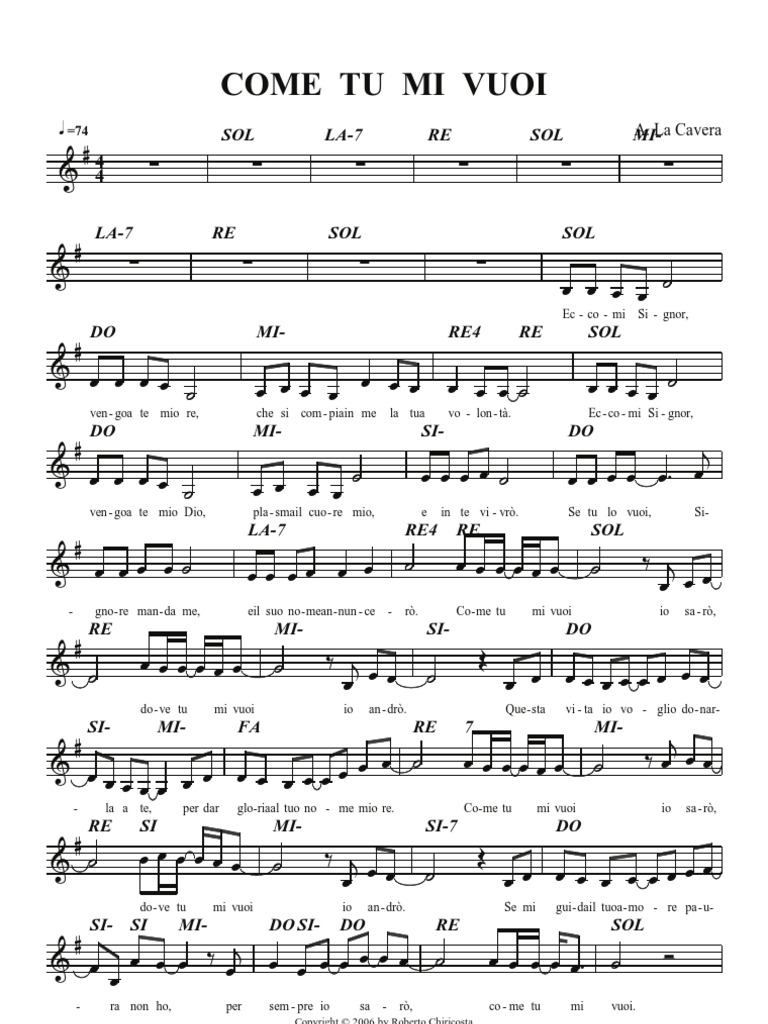 Type out all lyrics even repeating song parts like the chorus. Eccomi Signore vengo a Te mio Dio plasma il cuore mio e di Te. Come tu mi vuoi si allontana da ogni connotazione caricaturale dei personaggi per lasciare avanzare atmosfere quasi cinematografiche da noir anni 40 e sottolineare la drammatica. Alexia Alessia Aquilani Testo delle canzoni.